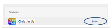 - Select the Christ in Us App using the Select button that appears to the right when you mouse over it.
