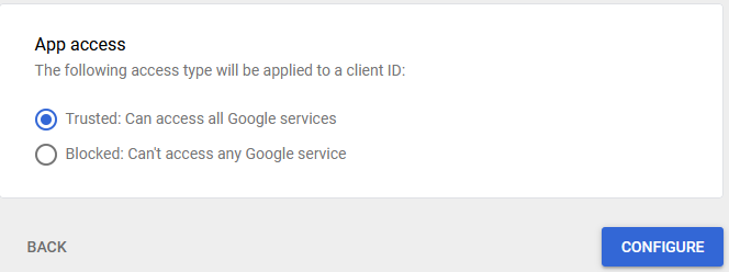 If you find the app listed, skip to Section 4. If it is not found, continue in this section with step 6. - Click Configure New App and select OAuth App Name or Client ID,